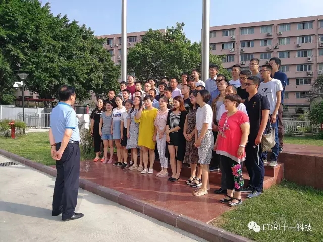 2017年8月12日上午9:00,晴日暖風,綠陰幽草。在十一科技南京分院院長戚海浪的帶領下,南京分院40余名干部員工到成都總部參觀學習。十一科技董事長趙振元、院史館主任陳巍親自在樓下迎接并合影留念。在升旗廣場前,趙振元同志致辭熱烈歡迎南京分同志們的到來,對南京分院的全體員工兢兢業(yè)業(yè)、努力工作和為十一科技的發(fā)展做出的貢獻表示由衷地欣慰與感謝。趙振元同志的講話令南京分院的同志們感受到了溫暖與關懷,倍感親切。